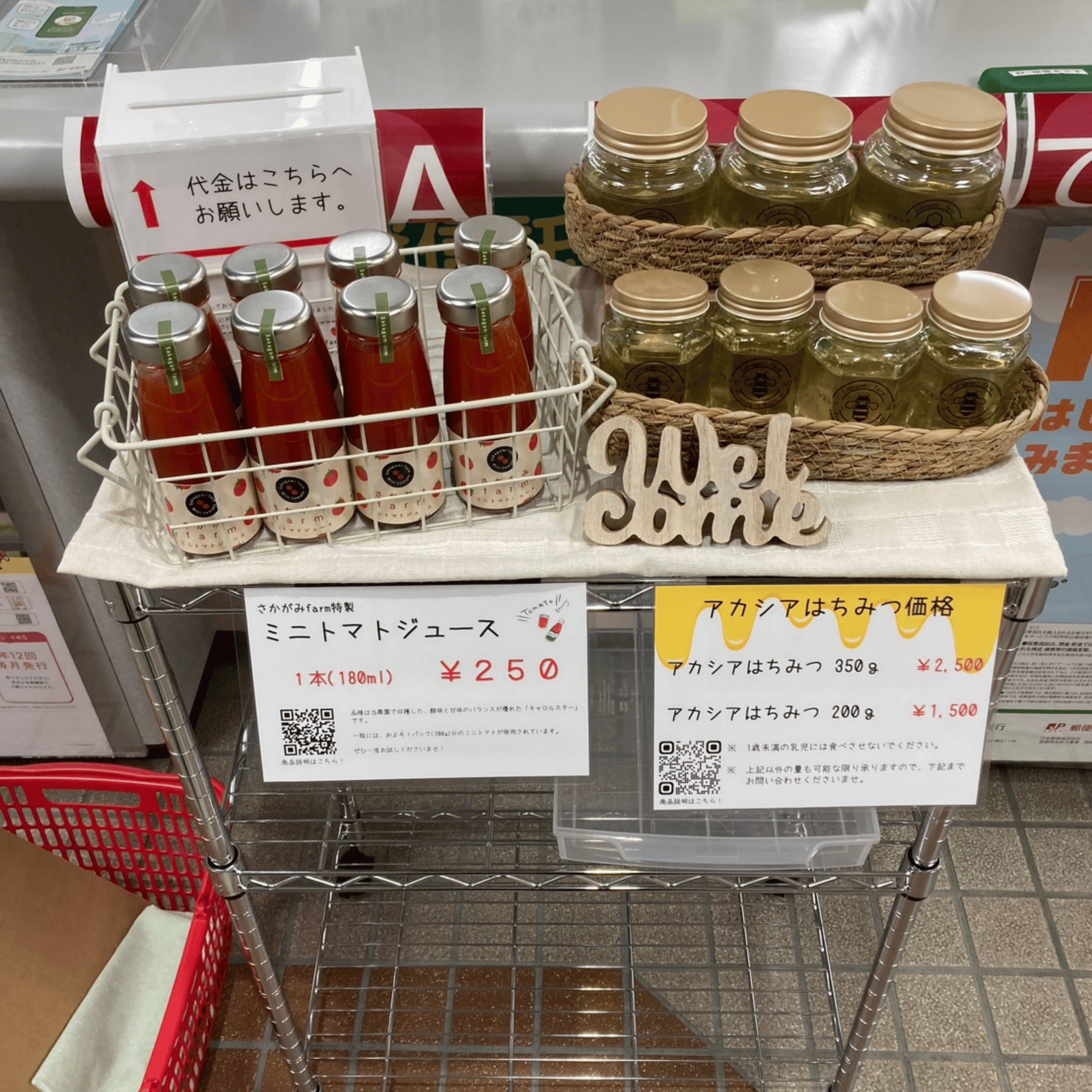 当サイトで扱う、はちみつやトマトジュースのほかに、朝採れの野菜を並べておりますので、お近くに来たときはぜひお寄りください!