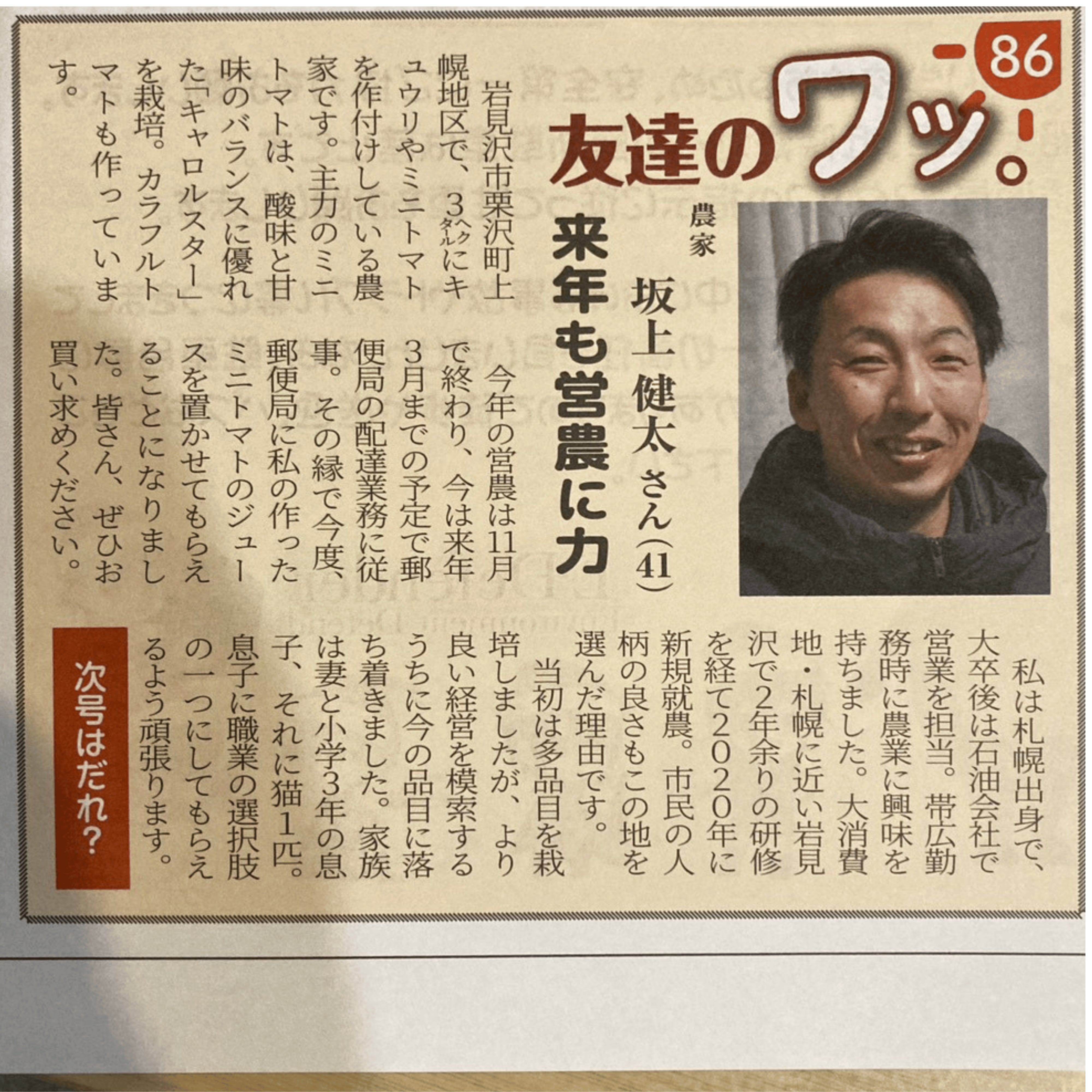 新規就農時に地元の新聞「プレス空知」に掲載していただきました!
